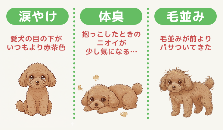 涙やけやニオイ、毛並みの変化って、