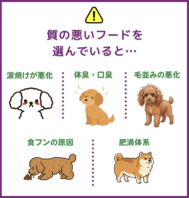 「涙やけ・ニオイ・皮膚トラブルは、 “穀物”が合っていないことが原因の場合も多い」